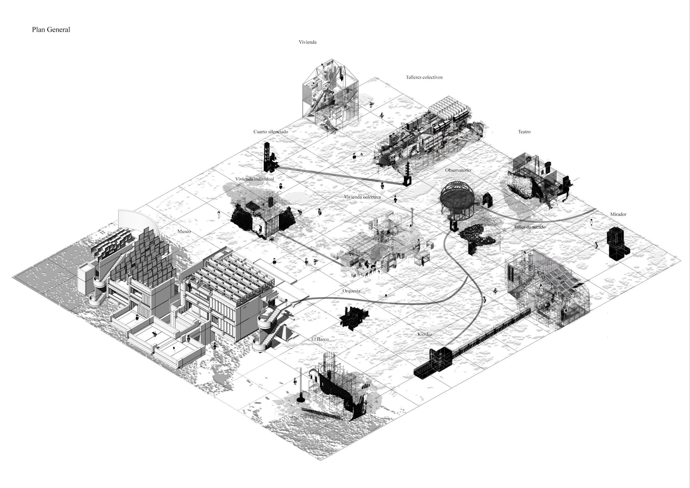 Se comienza el proyecto relacionándolo con dos obras de arte, una de ellas cabeza de torode Pablo Picasso, obra dadaísta, en donde se desplaza su significado al recomponerlos de la calle a la sala de exposiciones, aplicamos este desplazamiento semántico a la arquitectura y nos encontramos con la revalorización plástica de infraestructuras industriales en las imagenes de los becher en Desierto Rojo o En The Monuments of Passaic, analizamos proyectos desplazados como las dymaxion deployment units o los barrancones de chapa de Motherwells.