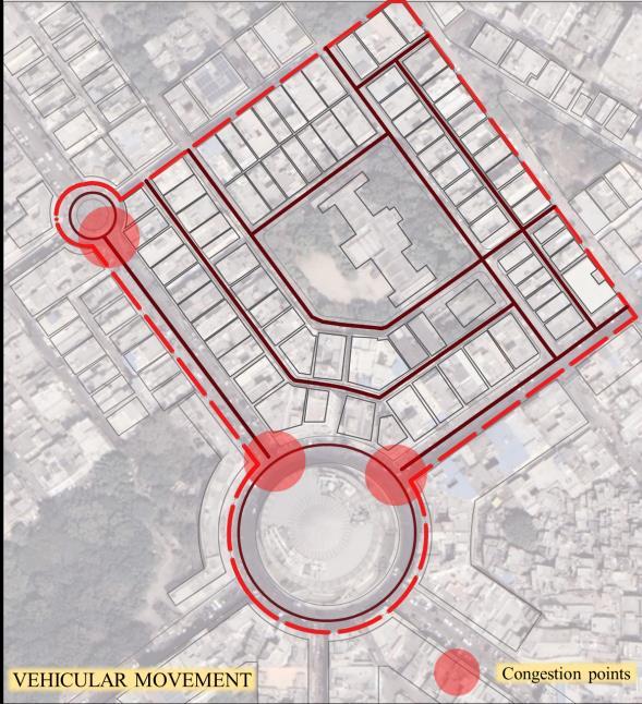 • The focus prioritizes shops over pedestrian comfort Narrow walkways and haphazard parking make navigating the market challenging for pedestrians, especially during peak hours