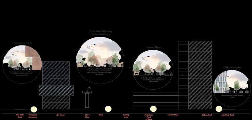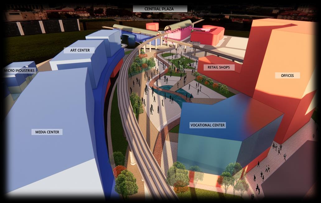 To generate a public realm that focuses on well being and quality of life that were achieved by enhancing cultural identity, social inclusion, the aim was to develop a mixed use realms that are linked through functions and open spaces.