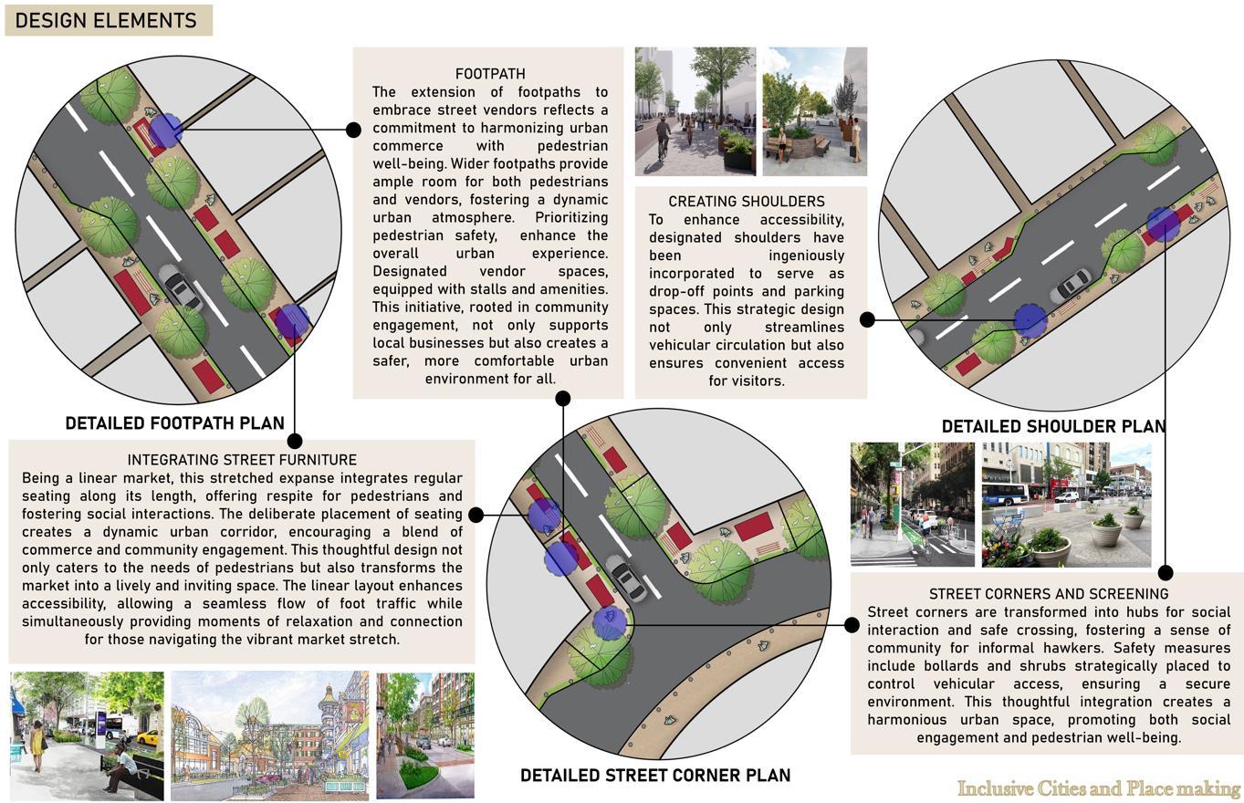 The aim of the design is to make the streets stretch a pedestrian priority streets. The strategy was to enhance the shopping experience by providing the pedestrian with ample walking spaces and allocating the vendor respective zones.