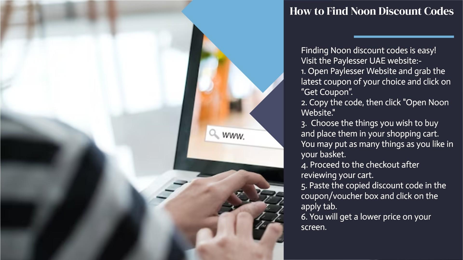 Here are the steps on how to get the best Noon discount codes"PAYLESSERUAE" through Paylesser UAE: