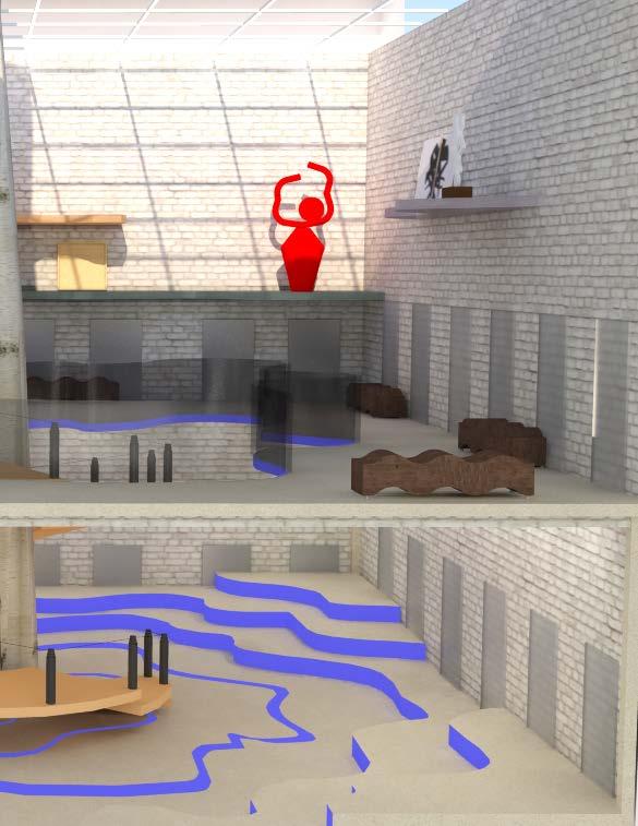 a series of immersive avant-garde installations inserted into utilitarian spaces that serve to sensorially engage and captivate users within the workplace. through the intersection of fine arts and interior design, the built environment can be transformed using light, movement and sound concepts stemming from the WELL building standard. as the world has shifted so digital, it is essential to attract energy back into transient and evocative physical environments designed to stimulate psychological wellness.
