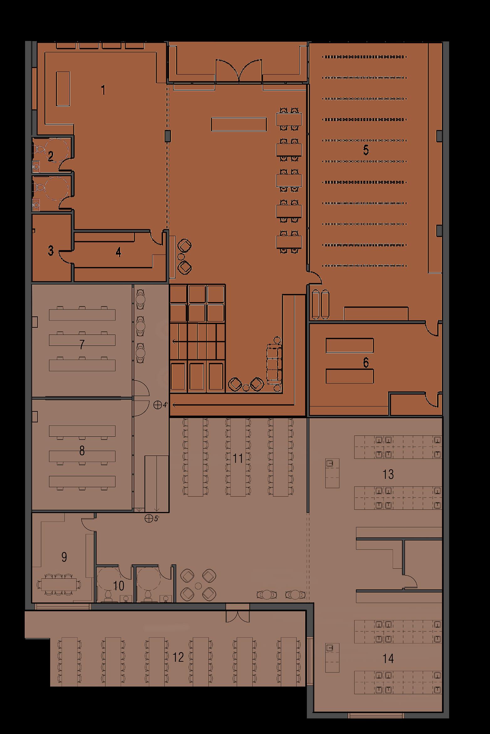 8 FOCUS ROOM REST ROOMS CREATE ROOM KITCHENETTE EMPLOYEE BREAKROOM MNGMT. OFFICE BAR STORAGE