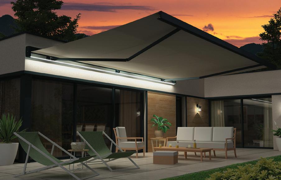 είναι αθόρυβοι και διαθέτουν διπλό συρματόσχοινο με επένδυση PVC. ΣΥΣΤΗΜΑ COFFRE 291 Διαστάσεις Πλάτος: έως 7,00 m max Προβολή: έως 4,00 m max Δυνατότητα φωτισμού LED POWEREDBY 135 mm 48 ● Καινοτόμο design ● Στιβαρή & κομψή κατασκευή ● ● ● RAL9016 RAL1013 RAL1019 RAL8017 RAL7016 RAL7040 RAL9005