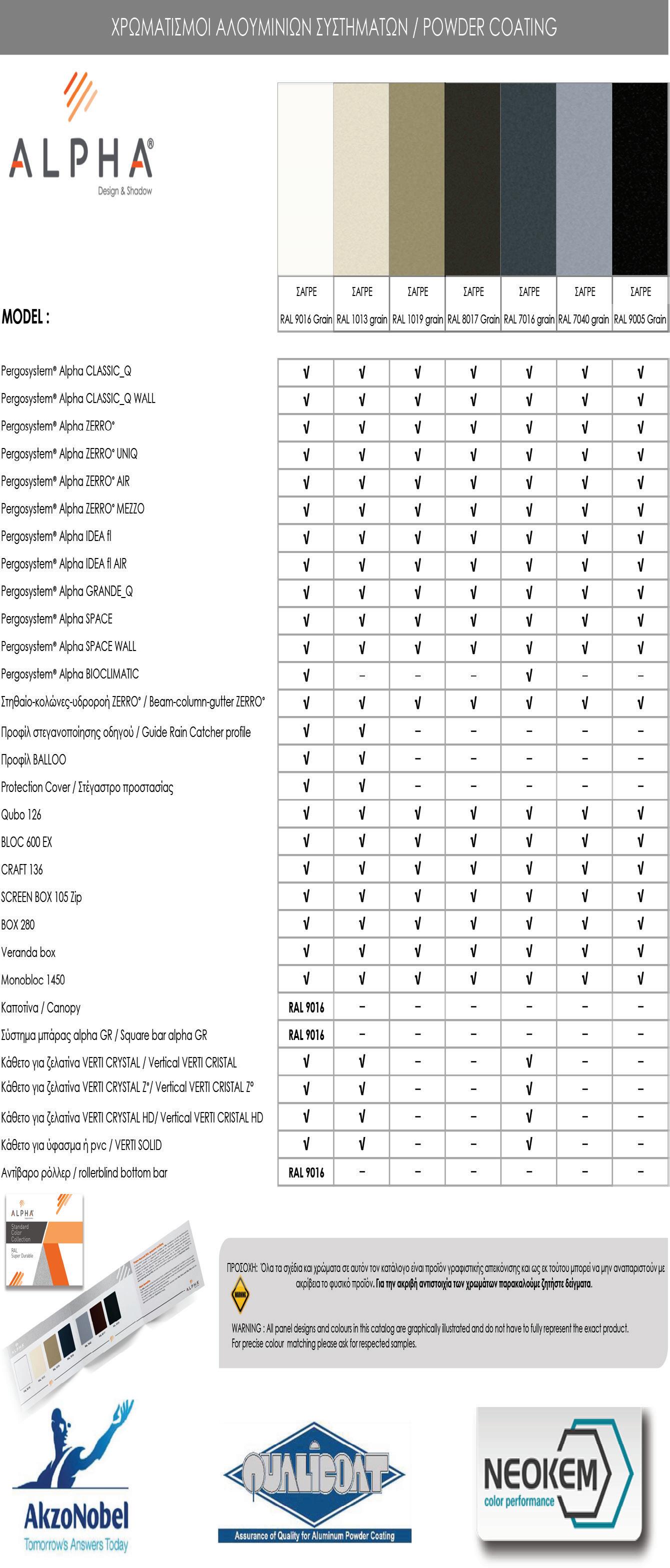 RAL1013 RAL1019 RAL8017 RAL7016 RAL7040 RAL9005 Τα συστήματα σκίασης που εμ-