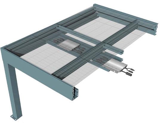 ELECTRA Διαστάσεις Mέγιστη κάλυψη 38,70 m2 Δυνατότητα φωτισμού LED ● 100% προϊόν αλουμινίου ● Eξασφαλίζει ενεργειακή αυτονομία ● Εύκολη συνδεσιμότητα ● Ευελιξία εφαρμογής ● Με σύστημα απορροής ομβρίων υδάτων Στάνταρ χρωματισμοί Φάσεις εφαρμογής RAL7016-ST Γκρι ανθρακί RAL9010 Λευκό ΣΥΝΑΡΜΟΛΟΓΗΣΗ ΔΟΜΗΣ ΤΟΠΟΘΕΤΗΣΗ ΠΑΝΕΛ