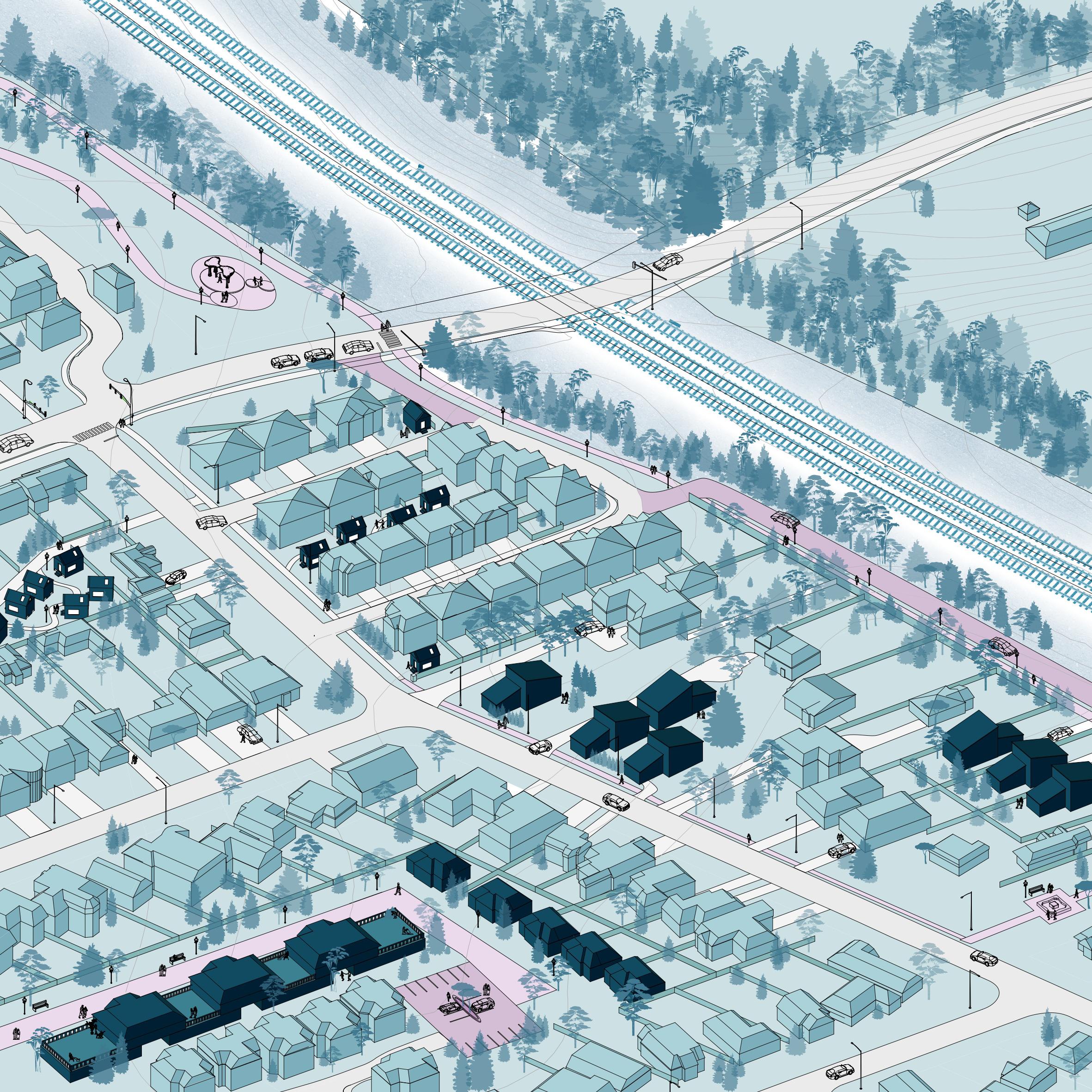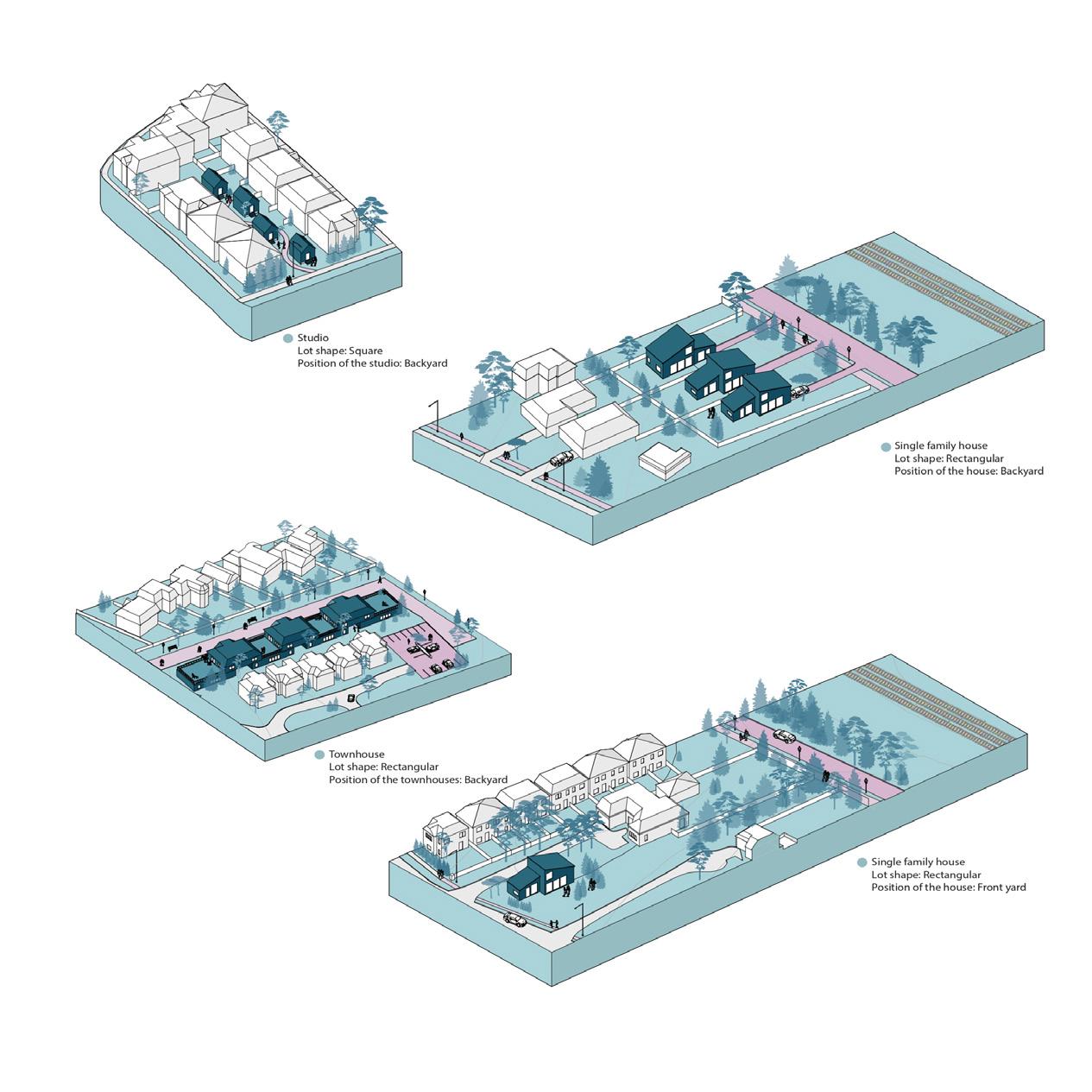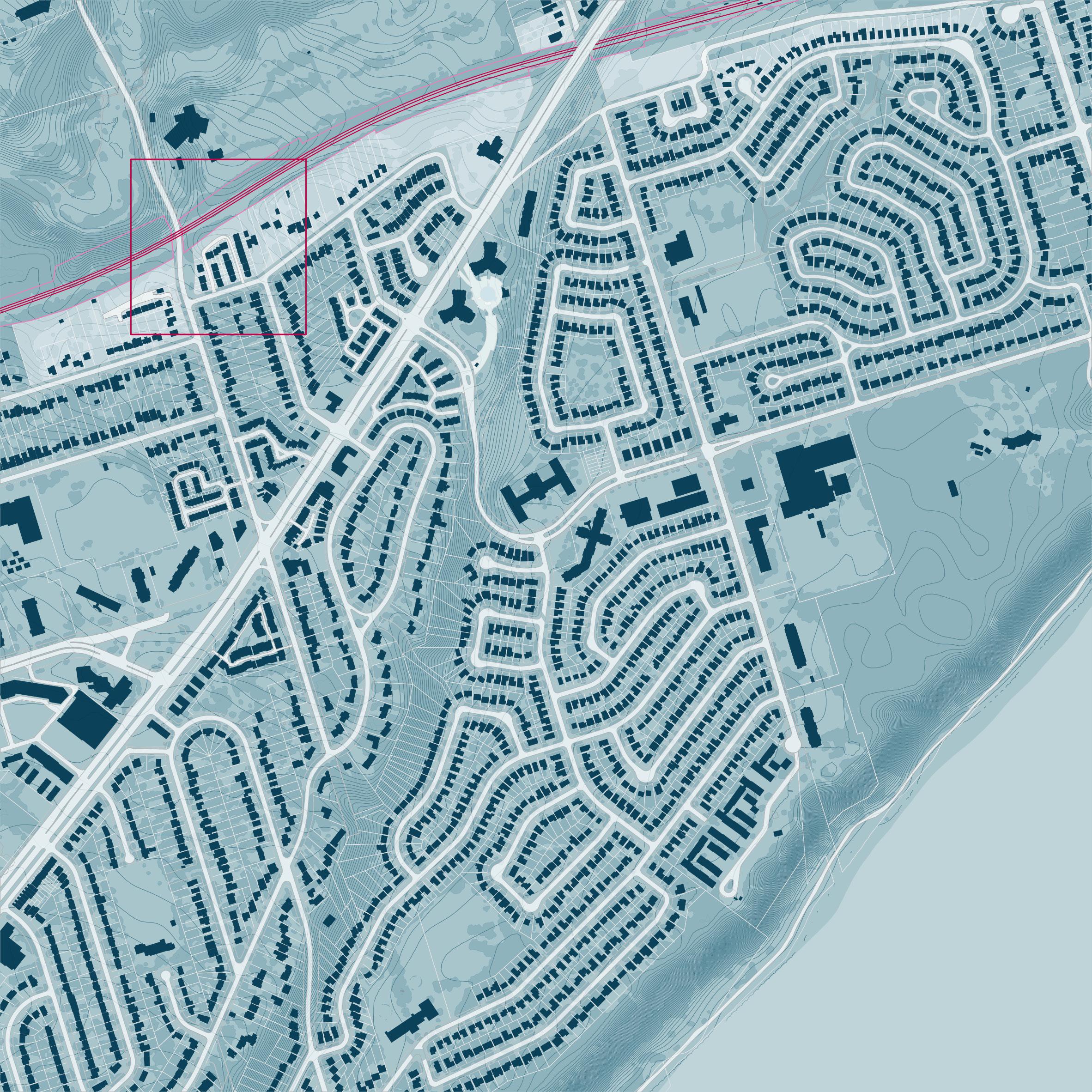 This project involves conducting an analysis of a specific site, focusing on housing typologies. After careful consideration, we have selected a typology and proceeded to add additional units based on our findings. The site in question is a 2 by 2-kilometer area located in Scarborough, positioned just above the lake. Primarily characterized as a low-density residential area, it features small businesses situated in the center, adjacent to Kingston Rd. Additionally, there is a golf course located at the top and a prominently highlighted railway line. Taking into account this context, my proposal aims to facilitate access to the additional housing units through the development of a new road. This road expansion is intended to provide improved connectivity and convenience. Furthermore, the units are categorized based on the diverse lot shapes found within the area, ensuring efficient land utilization and optimal urban positioning.