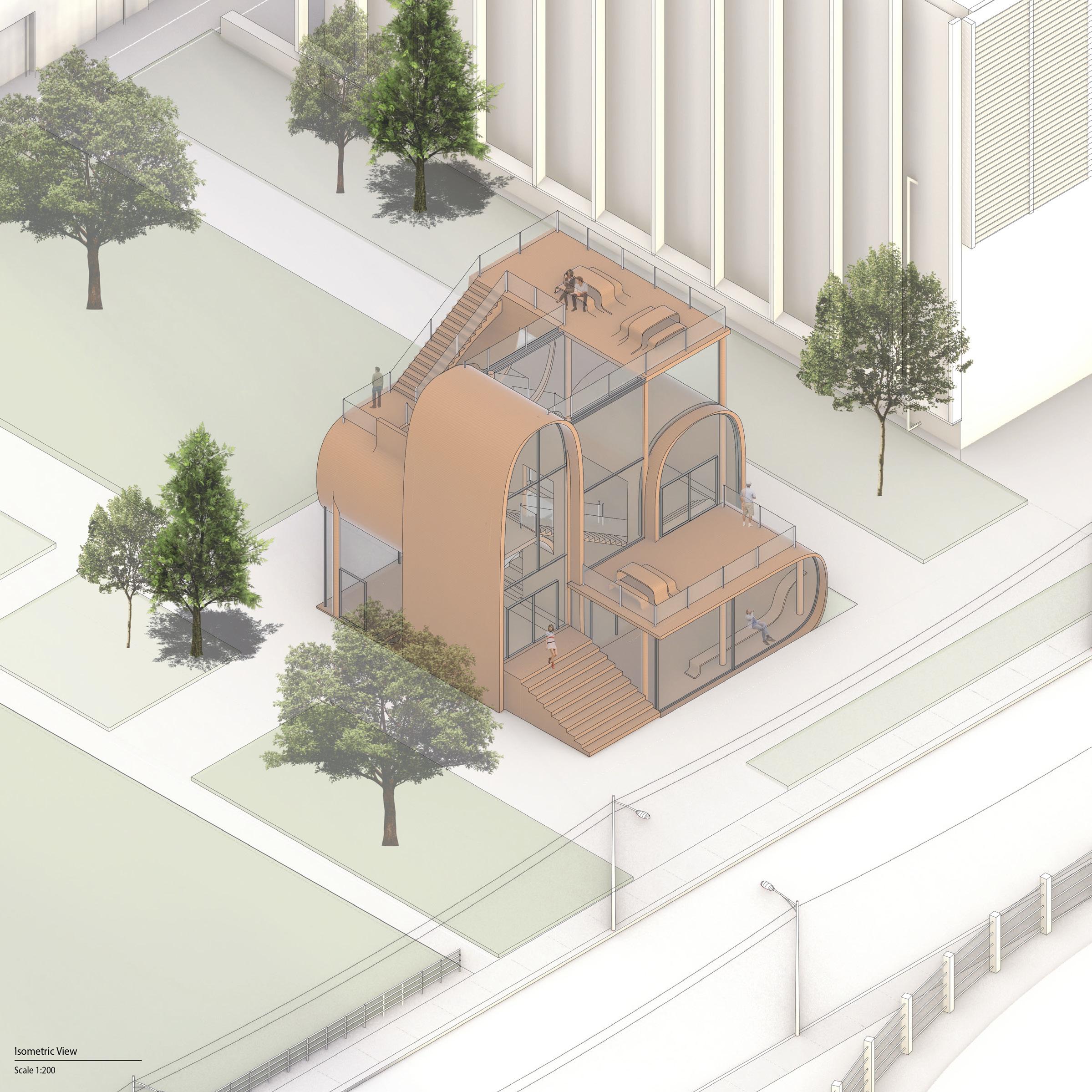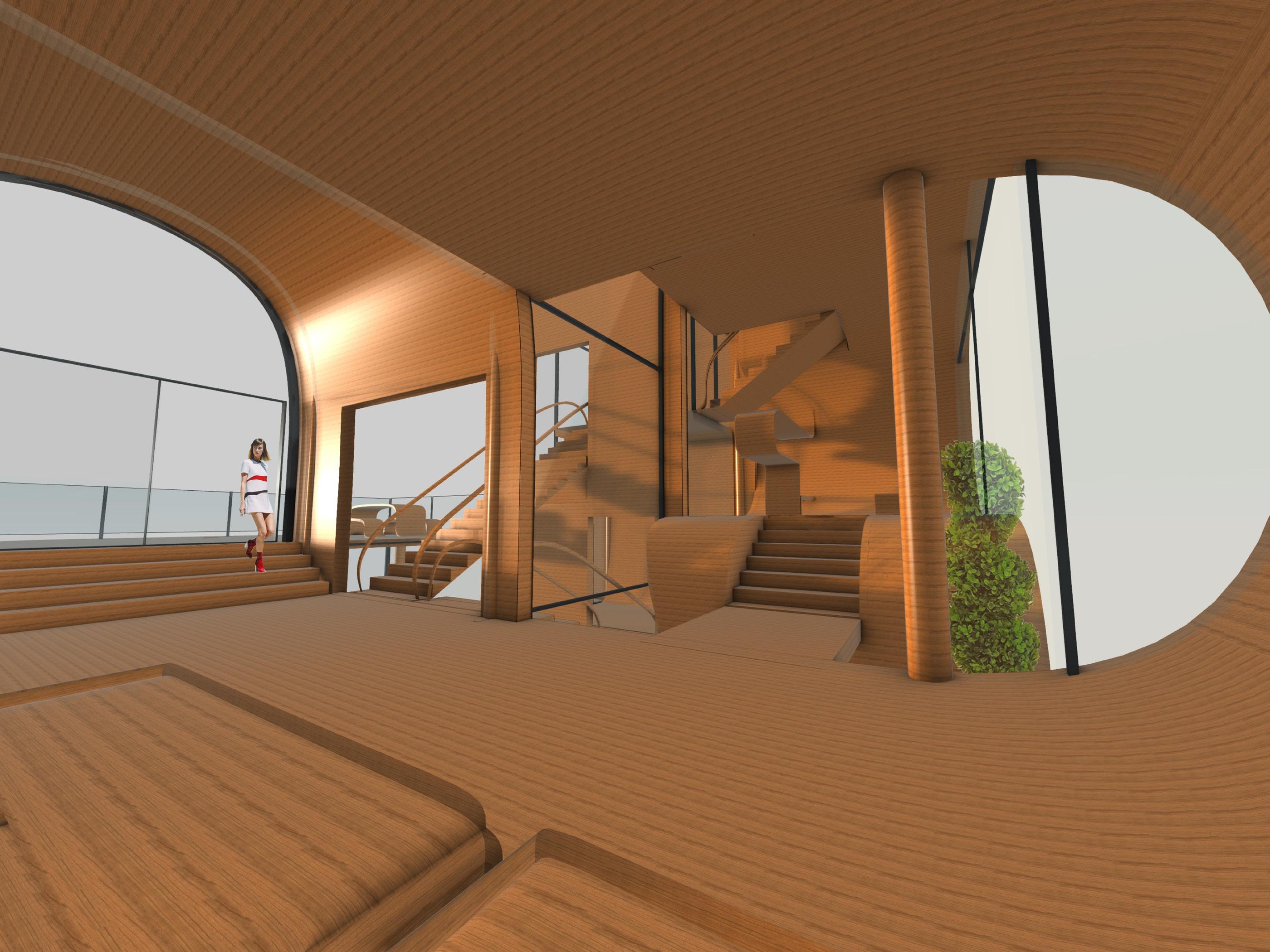 This project aims to create more effec�ve and relaxing spaces for studying via design centered around wood and natural light. By working with pliable surfaces, I saw this project as prac�ce for finding the rela�onship of the interior and exterior and unifying of the walls, roof, floors and even furniture in some rooms. The space is designed with open balconies that overlook the surrounding environment, as well as semi-open and closed rooms for studying. The use of wood provides a calming and soothing atmosphere, crea�ng an environment that is conducive to focused and produc�ve studying. Addi�onally, the effec�ve design of natural light helps to create a bright and invi�ng atmosphere that promotes alertness and concentra�on.