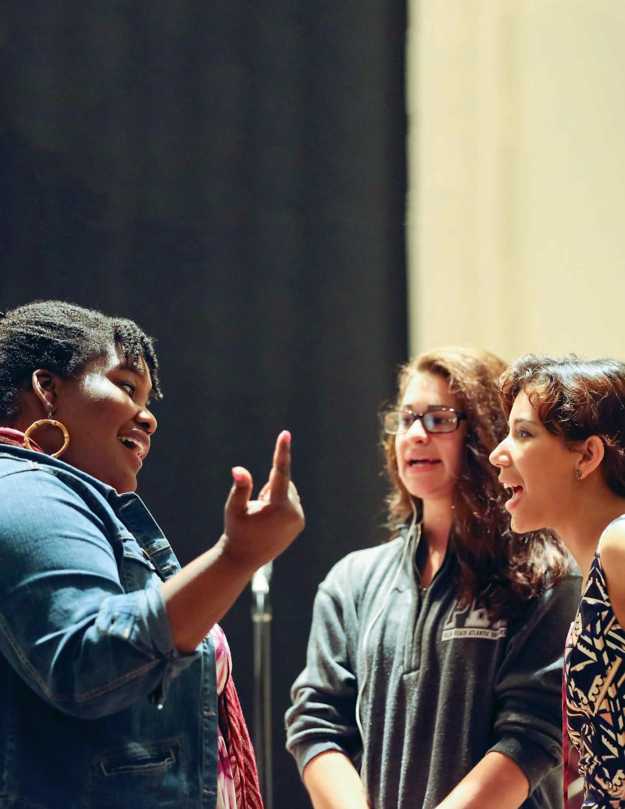 You take the high note, Jeanny Alexandre motions to Stephanie Barrera (far right) and Olivia Melendez as they harmonize for the Chapel Worship Team. To see and hear the team go to www.pba.edu/chapel-praise-14