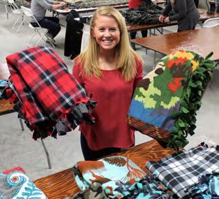 Madison Murchak ’15, above, leads workshops producing fleece blankets for veterans. Volunteers deliver the blankets with handwritten cards and dog tags that read "We Salute You."