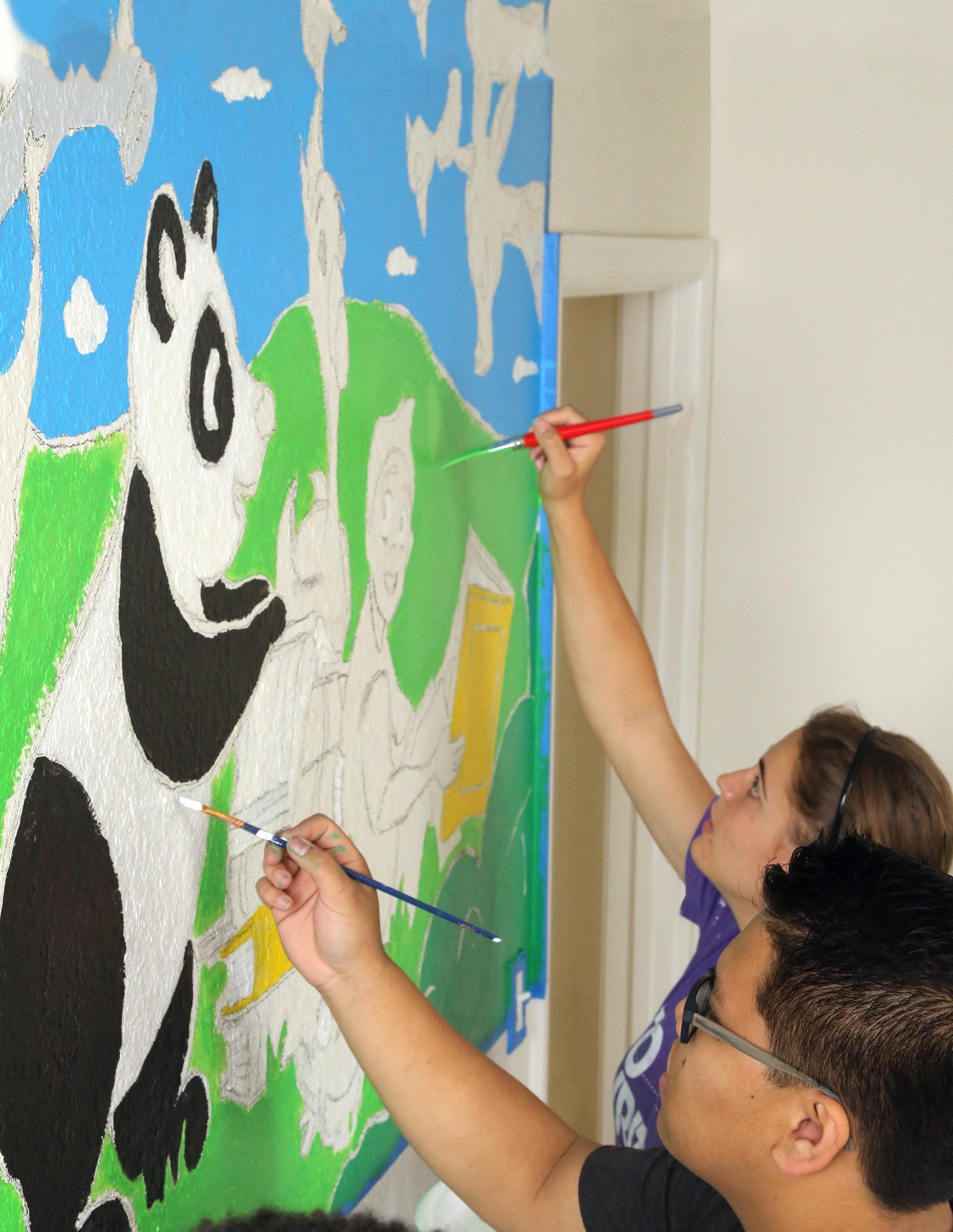 Book Nook art: Seniors Kent Berame and Megan Human paint a mural that Berame designed for a West Palm Beach youth center. The two joined other students working in partnership with BB&T on a project for PBA's community service program Workship. The program has topped 2.9 million hours of service performed by students. See page 2.