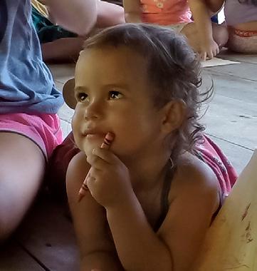 Cassidy Mason, far left, and Heather Wroth, below, play with children during PBA's spring break mission trip to Brazil.