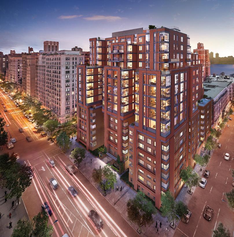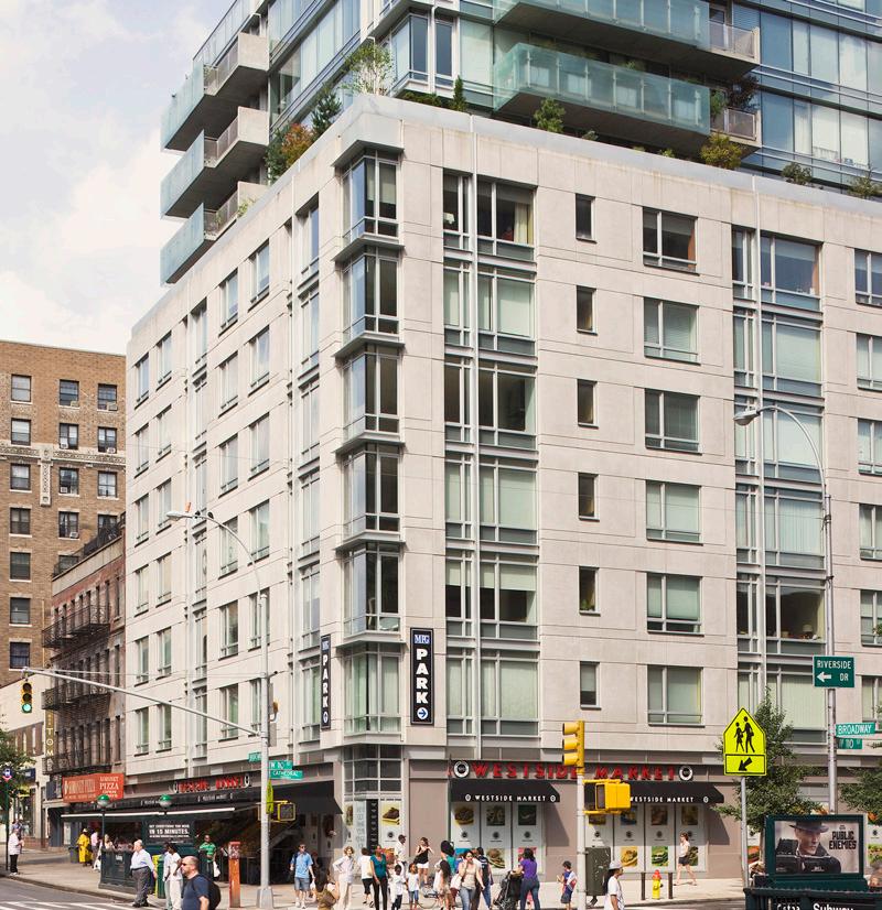 What emerged from these constraints was a condominium complex that introduced 98 new dwelling units into a sunny corner with views of Riverside Park and the Hudson River. Our design embraced the as-of-right zoning form using a precast concrete expression on the lower levels and curtainwall expression on the set back upper levels. The design is knitted together using concrete balconies on the curtainwall areas and window-wall and other metal details in the precast concrete areas.