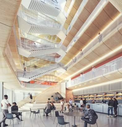 The mixed retail and office development transforms a much-altered 19th-century structure—originally a theater, more recently a beloved Polish banquet hall, and vacant since 2019—distinguished by a generous 80-foot-wide street frontage. Since no original architectural fea-tures remain on the derelict façade, PBDW is replacing it with a new one while preserving the building’s footprint, internal structure and, wherever possible, the character and materials of the loftlike interior spaces, including original masonry walls, wood joists, cast-iron columns, and 11-to-15-foothigh ceilings.