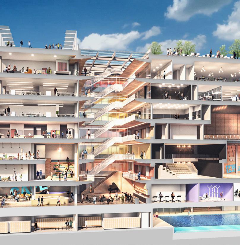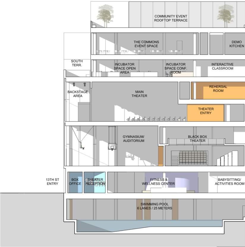 The 14th Street Y is a multi-generational community center in New York City. Their vision for the new Y is to serve simultaneously as a “town square” for the East Village community as well as provide a cutting-edge cultural destination that explores four programmatic pillars – arts and culture, education, health and wellness, and civic engagement.