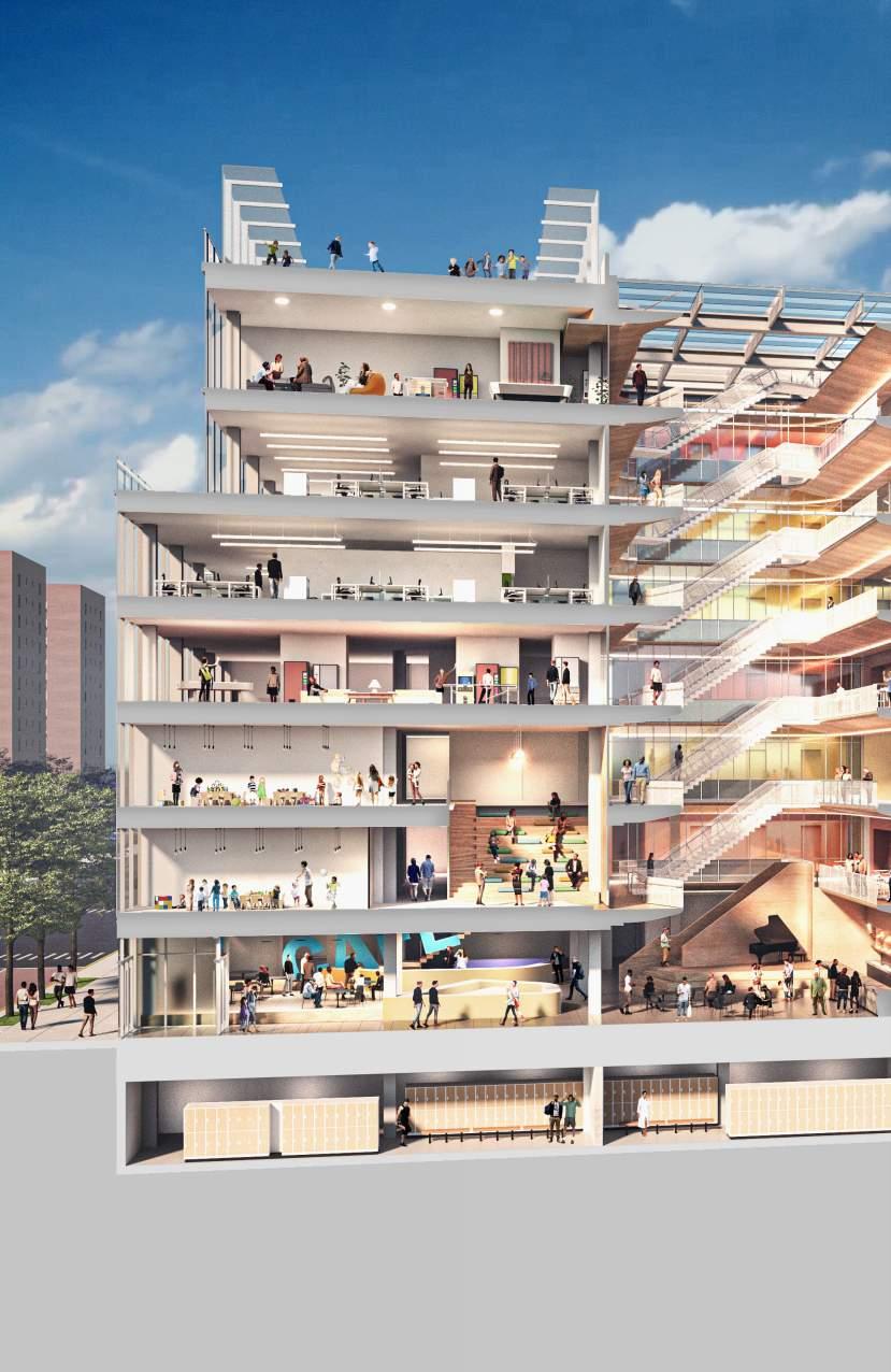 Since 2005, PBDW has been working with the 14th Street Y to prepare their current facilities for future growth through various adaptive reuse schemes. The comprehensive space planning articulated in 2017 resulted in a design that is inspiring, welcoming, spacious, modern, sustainable, and reflective of its community. Programming includes a lobby with café, market and gathering areas, theater and arts education center, preschool and parenting center, fitness and wellness center, community event space, rooftop recreation and gathering spaces. The complex programming is organized around a 7-story atrium created in the middle of the existing building. This symbolic “town square” floods the building with natural light, activating the “heart” of the complex while providing a comfortable place for community members to gather and socialize.