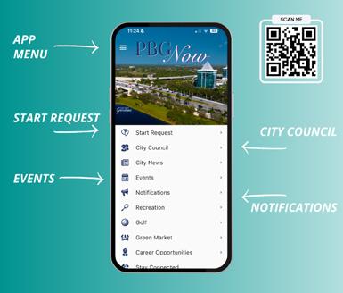Consider the City’s outstanding parks for your next gathering! Our online rental page makes it easier than ever to review the options and immediately book or request a facility. Some of the more popular parks include Gardens District Park, Gardens Park, Lilac Park, Mirasol Park, and PGA National Park. Scan the QR code or visit pbgfl.gov/ rentals to get started.