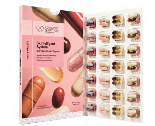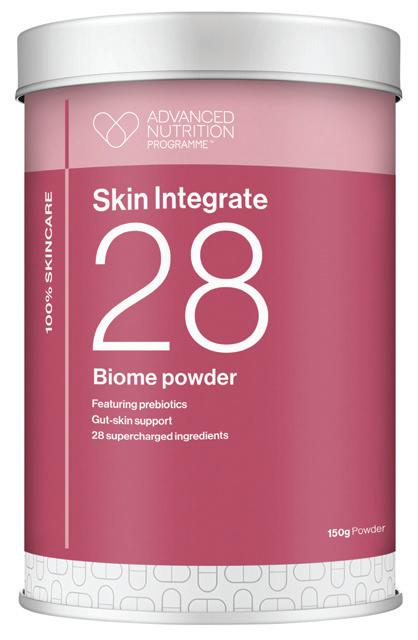 Advanced Nutrition Programme has entered the functional powders category with the launch of Skin Integrate 28 Biome Powder. Combining 28 sciencebacked ingredients, including amino acids, vitamin C, zinc and plant fibres with polyphenols, the product is formulated to be like a superfood for the gut microbiome, as it fuels 39 trillion bacteria by increasing the abundance of bacteria in 48 hours, and supporting the production of postbiotics. It promises to give brighter, more resilient and hydrated skin, along with more energy and improved focus.