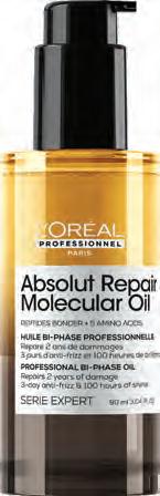 Molecular Bi-Phase Oil from L’Oréal Professionnel Paris works to deliver dual action repair, both at molecular and surface levels, for up to three days frizz control and shine. The product’s new patented technology comes with an aqueous phase, which sees peptide bonder and five amino acids travel deep inside the cortex to repair and rebuild the hair’s molecular structure. The oil phase creates a protective veil, helping to restore the hair’s lipidic barrier.