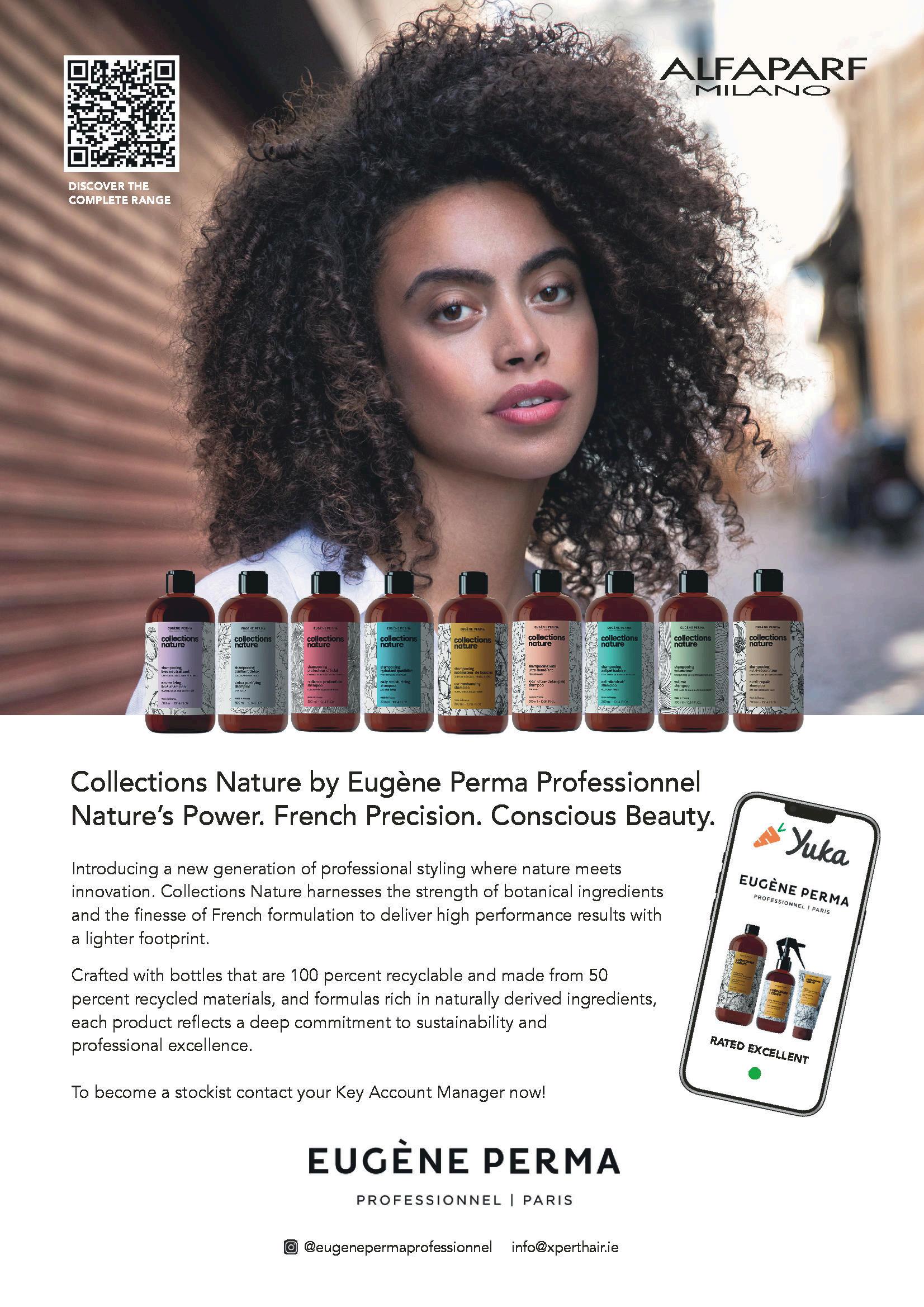Eugène Perma Professionnel has launched in the Irish market with its new Collections Nature range. Made in France, it features nine specialised segments. The Curls, Nutri-repair, Daily Moisturizer, Volume, Radiance, Detox Purifying, Neutralising, Anti-dandruff and Kids lines promise to meet diverse hair needs, from colour protection and nourishment to strengthening the hair fibre and taming frizz. Styling products are also available, including Volume Spray to add body, and Daily Spray for heat protection and lightweight care. All packaging is made from recyclable and sustainable materials, reducing the brand’s environmental footprint.
