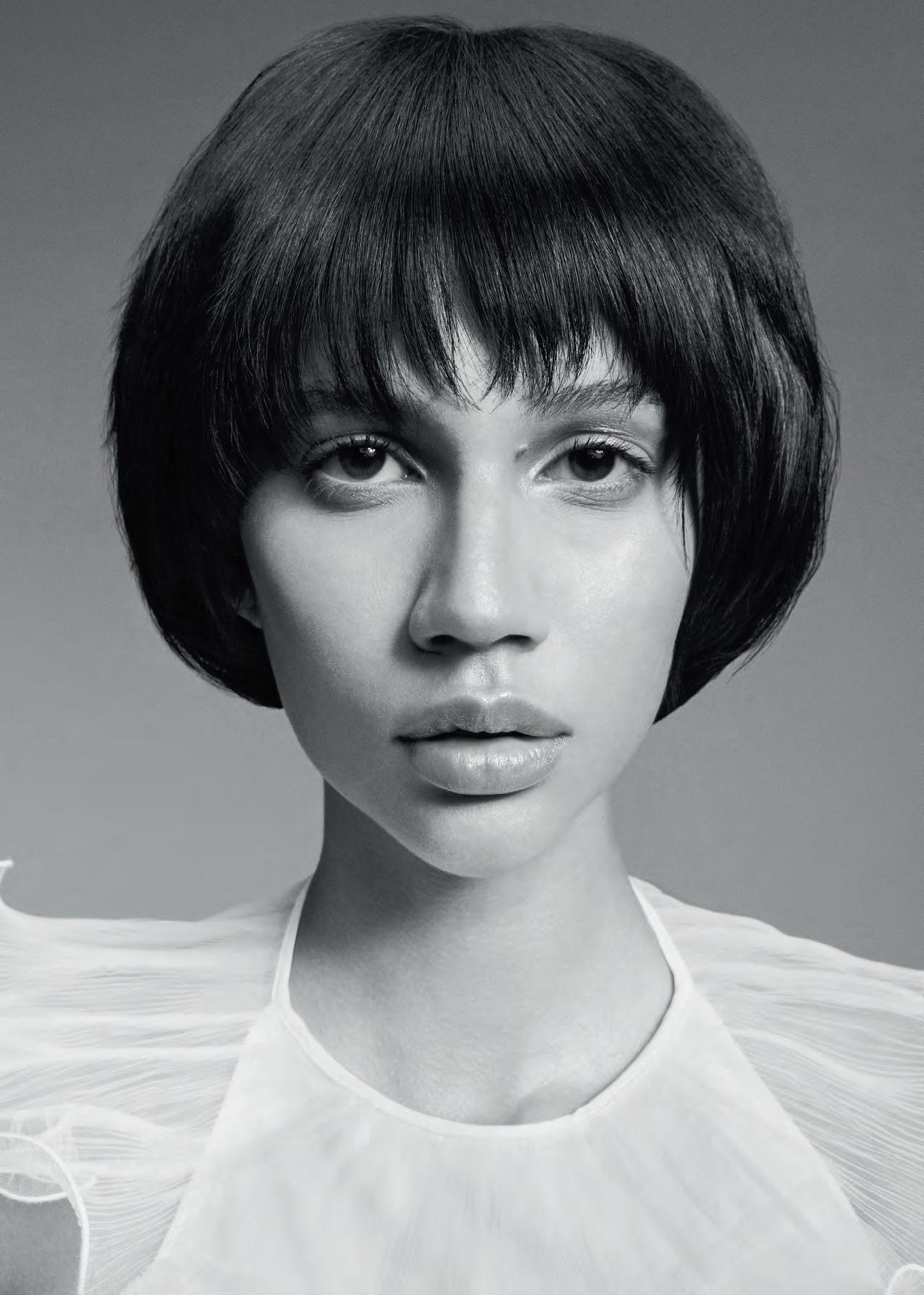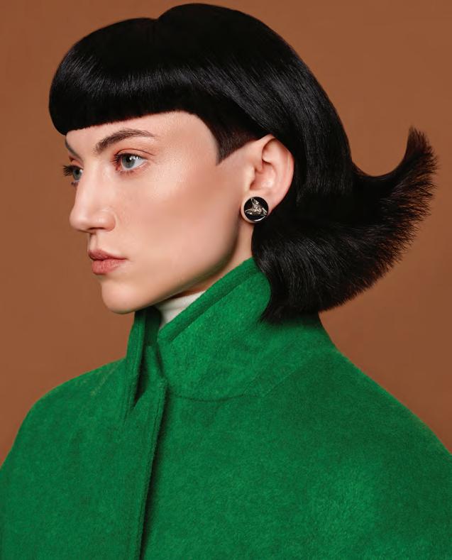 “I have crafted a series of hairstyles that pay homage to the sophistication of the past, while embracing the creativity of the present with meticulous attention to detail. I’ve sculpted clean, strong silhouettes that exude confidence and style. Each hairstyle is a work of art, blending smooth structure with subtle texture to create a dynamic visual impact. The interplay of light and shadow against the warm backdrop adds depth and dimension.” Michelle Summers Davies, Michelle Davies Hair
