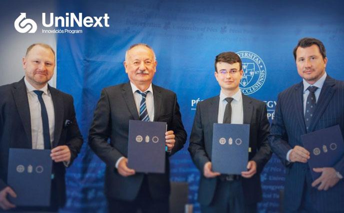 Az UniNext újabb fontos mérföldkôhöz érkezett a PTE, az Universitas Quinqueecclesiensis Alapítvány és az Egyetemi Hallgatói Önkormányzat háromoldalú együttmûködési megállapodást írt alá annak érdekében, hogy bevonja a hallgatókat az átfogó régiófejlesztési programba. Az együttmûködés céljai között szerepel a helyi munkaerô megerôsítése, a PTE-n végzett hallgatók helyben tartása és a térség versenyképességének fokozása is.