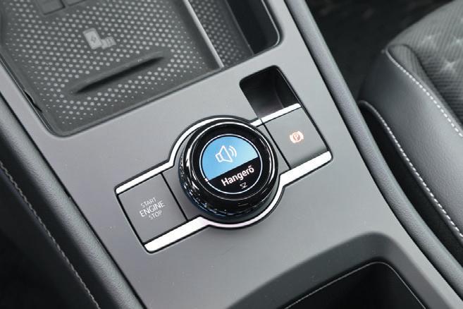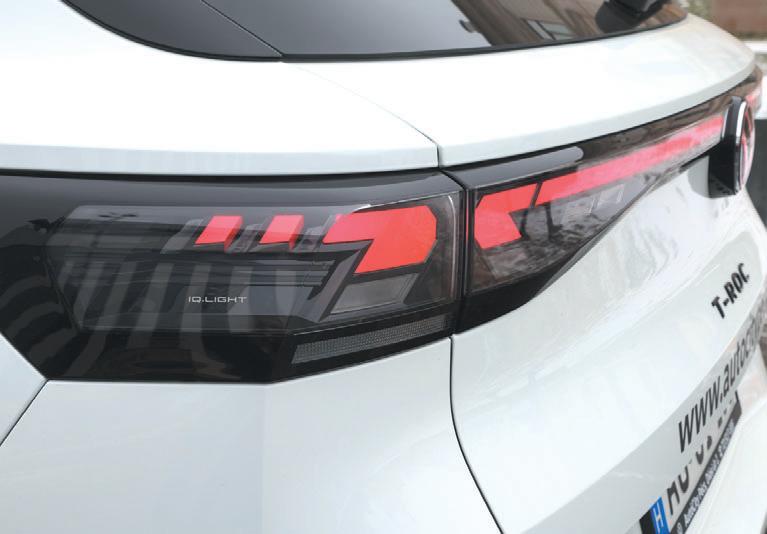 —Tetszett a vezetô elôtti nagy LCDmonitor és a középsô nagy méretû panel is. A váltó karja a kormány mögé került, ráadásul tekerni kell a fokozatokhoz, de ezt nagyon gyorsan megszoktam. A kormány rengeteg gombot kapott, ám ezeket könnyû volt kezelni, minden egyértelmû és logikus. A középsô nagy kijelzô még mindig megosztó, van, aki nem szereti, de nekem ez a méret kényelmes, jól átlátható. Dicsérendô, hogy egyetlen gombnyomással abba a menübe jutunk, ahol kikapcsolhatók az egyes asszisztensek, így azok is gyorsan személyre szabhatják a T-Roc-ot, akiket zavar például a sebességhatárokra történô figyelmeztetés. A klasszikus váltókar helyén lévô hangerôszabályzó és üzemmódválasztó közepében egy kis LCD-kijelzô is van, ez már a prémium kategóriát idézi, csakúgy, mint az ajtók áttört felsô borítása mögött felsejlô hangulatvilágítás.