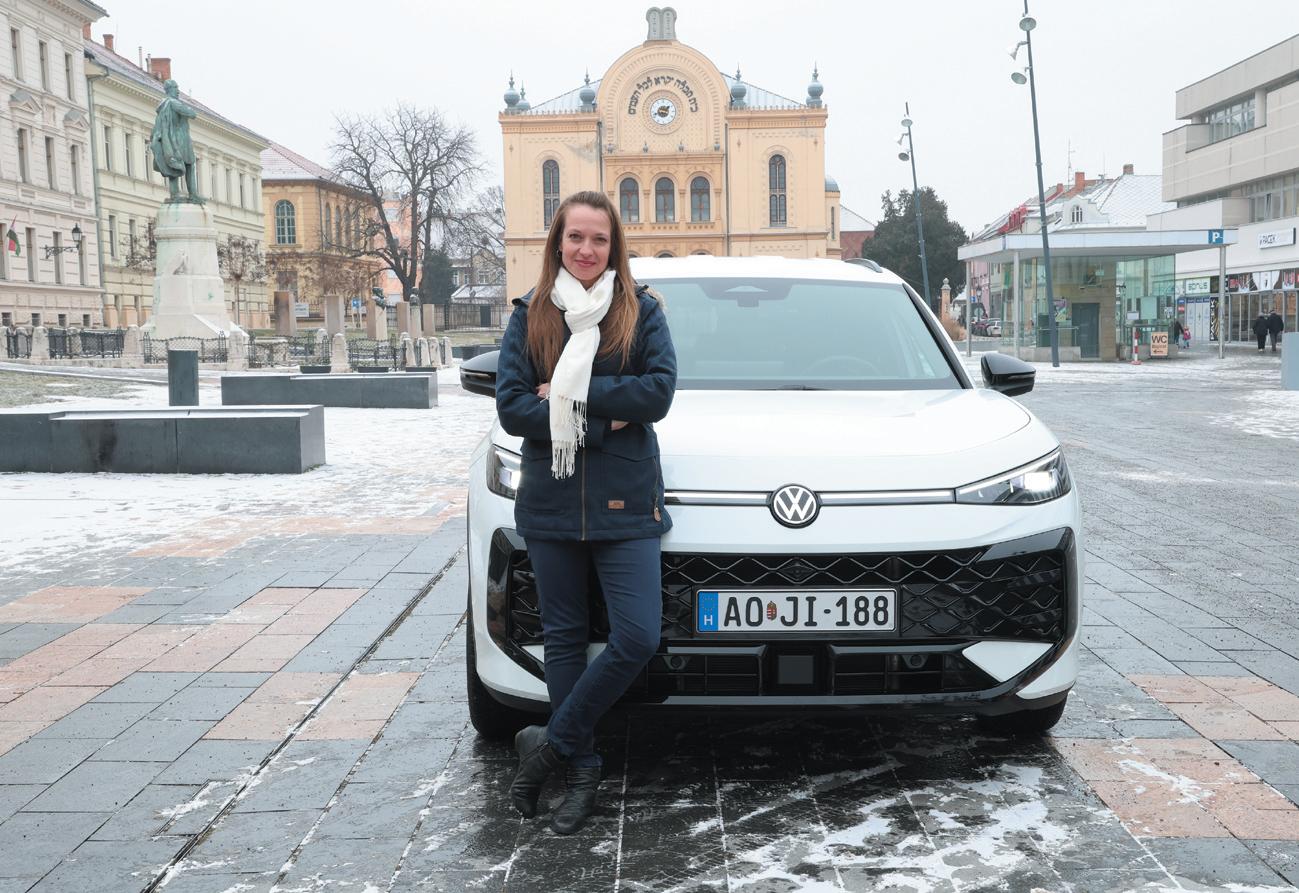 —Megkapta elôl és hátul is a lámpák között húzódó fénycsíkot, ami nekem nagyon tetszik, izgalmas lett tôle az autó, ráadásul itt már az emblémák is világítanak. A motorháztetô élei és a hátsó kerekek feletti markáns ív sportossá teszi az autót. A tesztautó R-line kivitelû, merészebb a lökhárítója, ami még sportosabbá teszi a karosszériát. A méretek visszafogottak, ezzel az autóval még kényelmesen lehet közlekedni a pécsi belvárosban vagy a mecseki dûlôkben is.