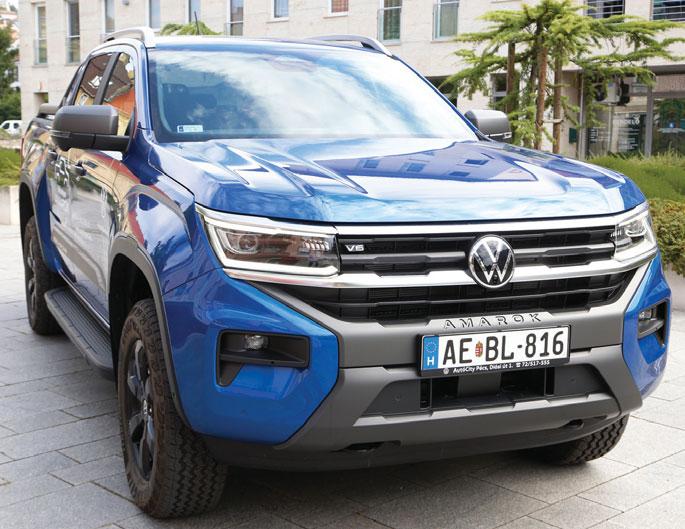 — Kétségtelen, hogy impozáns látvány az Amarok, de kiemelném, hogy nem tolakodóan nagy. A Volkswagen arculati elemei barátságossá teszik a karosszériát, ügyesen integrálják a személyautókról megszokott formákat és részleteket a pickupra. Szépek az elsô ledes lámpatestek, elég magasra is kerültek, így kevésbé sérülékenyek. A hátsó lámpák is a márkára jellemzôk. Tetszik a plató melletti matt fekete keret is, ezt is sikerült könnyedebbé tenni, mint amit megszoktunk. Sôt a tesztautó metálkék színe is nagyon tetszik.