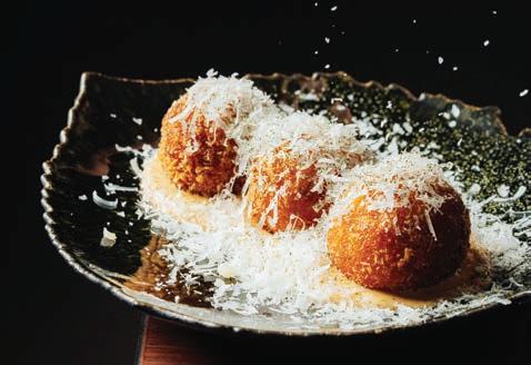 In a neighborhood defined by artistic grit and irreverent style, Shiso doesn’t just fit in—it sets a new standard. This ambitious two-story newcomer channels Wynwood’s visual energy into every corner, from graffiti-tagged beams and sprawling murals to lush greenery and a sculptural, origamiinspired bathroom entryway. (Even the bathrooms themselves are an aesthetic flex, featuring anime and custom works by local artists.)