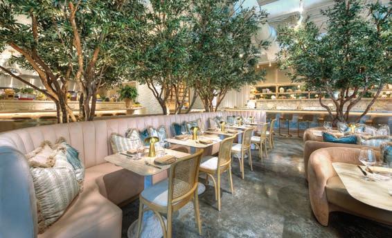 note cave with its custom rough-stone wall. “The design of this space is elevated by the refinement in every detail,” explains Racy. “It invites you to dine opulently while surrounded by nature’s allure.”