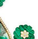 Printed neoprene jacket (price upon request), printed neoprene skirt ($4,050), necklace ($8,750), Chanel, Aventura Mall, Bal Harbour Shops, Miami Design District, chanel.com; Duchess ear clips with coral and diamonds set in platinum and 18-karat gold ($24,750), Kensington cuff in 18-karat gold ($25,750), Polka Dot ring with carved black jade and diamonds set in 18-karat gold ($11,500), Verdura, Greenleaf & Crosby by Betteridge, greenleafcrosby.com.