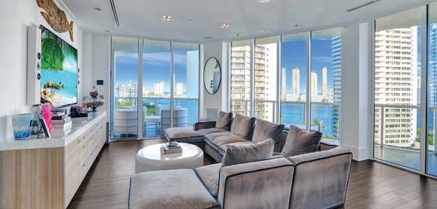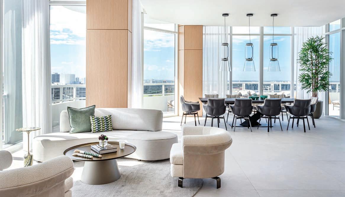 Rebecca and Garfield Spencer decided they wanted a vacation home in Florida where they could escape Rhode Island’s harsh winters. They found their place in the sun in the form of a 7,500-square-foot penthouse (with an additional 2,500 square feet of terrace space) in Aventura. Once the keys were in their hands, the Spencers called Rafaela Simoes and Laila Colvin of 2id Interiors to create a high-style residence with a no-clutter, no-fuss interior.