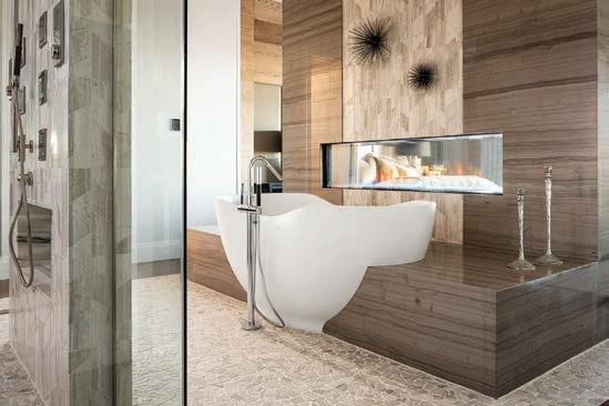 PRIMARY BATHROOMS ARE BECOMING THE NEW PLACE FOR TECH-SAVVY PRODUCTS. POPULAR ELEMENTS INCLUDE SMART TOILETS AND BIDETS, STEAM SHOWERS WITH AROMATHERAPY, HYDROTHERAPY TUBS, AND EVEN SAUNAS. HOTEL-WORTHY TOUCHES SUCH AS TOWEL WARMERS ARE TRENDING AS WELL.