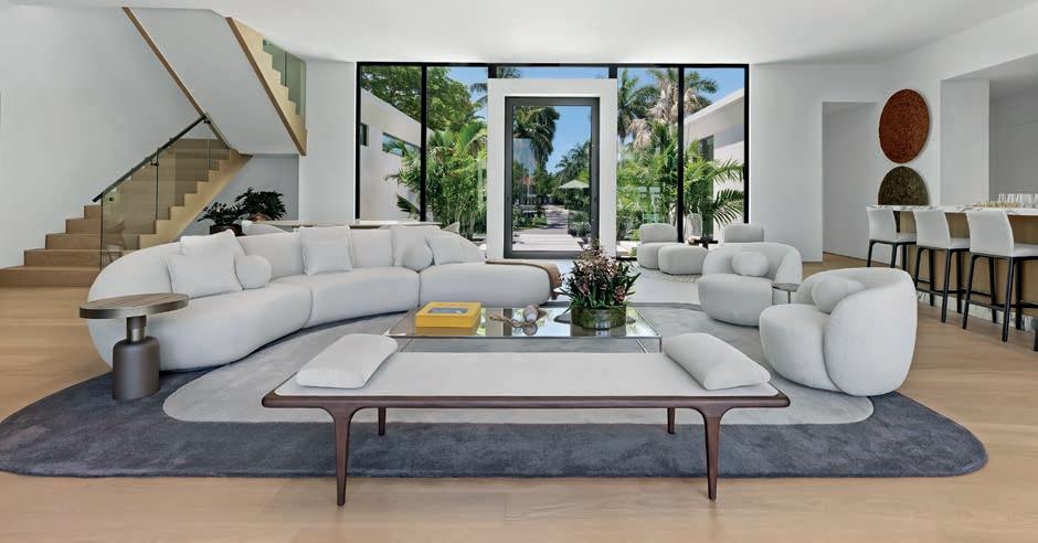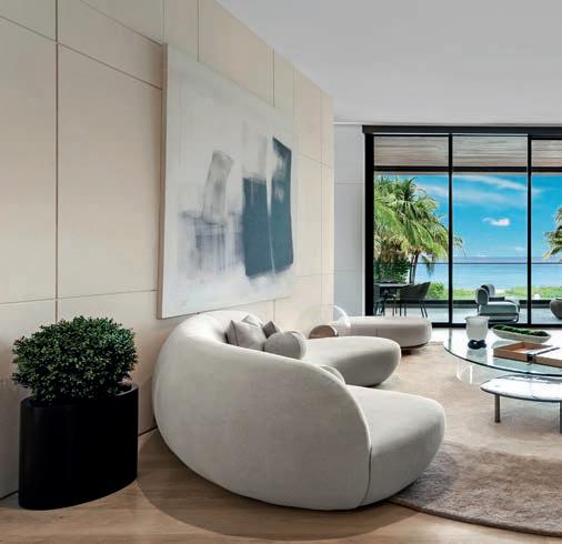 There’s an exhilarating sense of having arrived upon entering the 10,000-square-foot penthouse atop The Ritz-Carlton Residences, Miami Beach—featuring floor-to-ceiling windows and idyllic vistas of Surprise Lake and Biscayne Bay. “A seamless connection to the outdoors is undeniable when you step foot into this beautiful tropical oasis,” says designer Blanca Wall, founder of The Wall Studio, who customized the getaway for clients from New York. “The homeowners wanted a peaceful family retreat—comfortable yet approachable, reflecting a relaxing but luxurious atmosphere.”