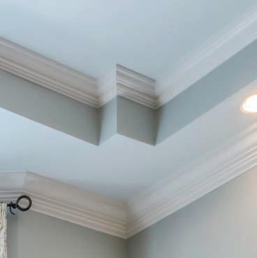 above: The primary bedroom’s art deco-inspired ceiling design is delicate, but still makes an impact.