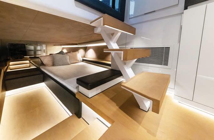 windshield and a cozy sofa for two. And Wajer has cleverly created space in the sides of the hull to stow a couple of Seabob electric underwater scooters.