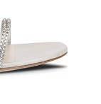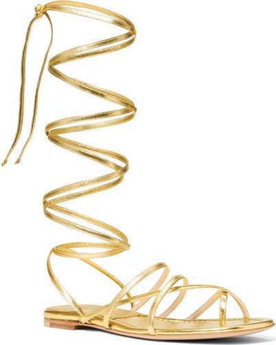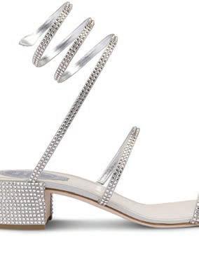 Asymmetric cutout gown ($3,290), silver cuffs ($350 each), Michael Kors Collection, michaelkors.com; Aveline 100 dove blue sandals with asymmetric grosgrain mesh fascinator bows ($995), Jimmy Choo, Aventura Mall, jimmychoo.com.
