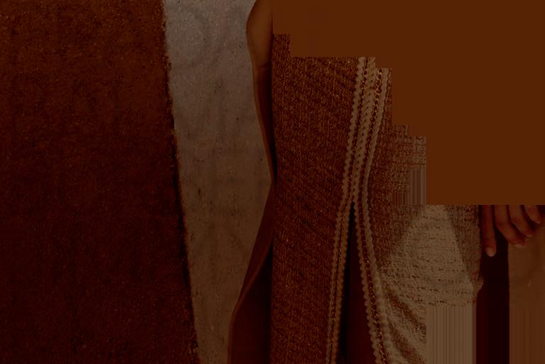 Coated fantasy tweed jacket ($6,200), coated fantasy tweed skirt ($3,150), metal and strass ring ($700), metal and strass earrings ($1,500), Chanel, Aventura Mall, Miami Design District, chanel.com