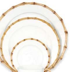 The bamboo trim on Juliska’s dinnerware (priced by piece) exudes a casual elegance that can be dressed up or down. Bloomingdale’s, Aventura (bloomingdales.com)
