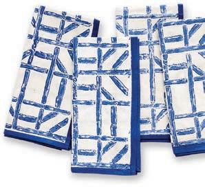 Effortlessly chic and fresh, Pomegranate’s block-printed napkins ($56 for set of four) feature a geometric bamboo pattern. Mandolin Back House, Miami (mrsmandolin.com)