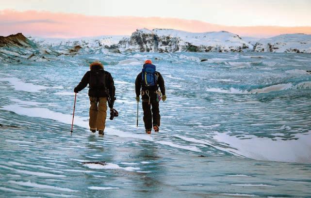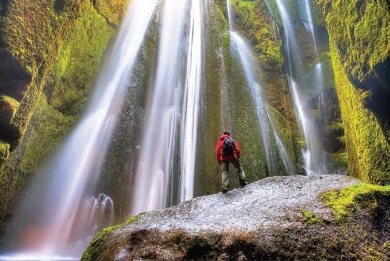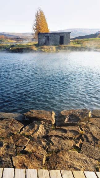 But Iceland offers more than just waterfalls. For bubbling mud pots and boiling hot springs, make your way to the Geysir geothermal area or try Thingvellir National Park (thingvellir.is/en), a UNESCO World Heritage Site that marks the place where the Eurasian and North American tectonic plates meet and drift apart. If you skipped the Blue Lagoon, stop at the nearby Secret Lagoon ( s e c r e t l a g o o n . i s ) to dip in a lesscrowded, man-made pool fed by hot springs.