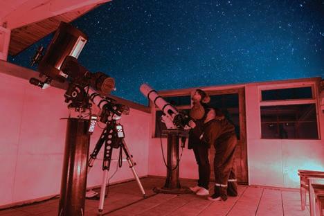F r o m S e p t e m b e r t h r o u g h A p r i l , t h e h o t e l m a k e s p e e p i n g t h e n o r t h e r n l i g h t s a p r i o r i t y . I f t h e l i g h t s b e g i n d a n c i n g a c r o s s t h e s k i e s d u r i n g d i n n e r , r e s t a u r a n t g u e s t s a r e s u m m o n e d t o t h e h o t e l ’ s o b s e r v a t o r y t o w a t c h t h r o u g h t e l e s c o p e s . S c h e d u l e a w a k e - u p c a l l s o y o u d o n ’ t m i s s t h e s h o w i n c a s e t h e l i g h t s a p p e a r a f t e r y o u r b e d t i m e .