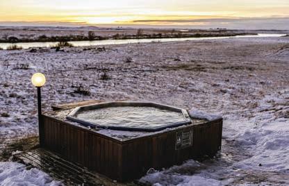 When it’s time to recharge, opt for a stay at Hotel Rangá ( h o t e l r a n g a . i s ) , a luxury hotel perched along the East Rangá River. The countryside retreat recalls an elegant log cabin, with rooms boasting soaking tubs, balconies, and heated bathroom floors (welcome luxuries after outdoor explorations). Be sure to try the hotel’s