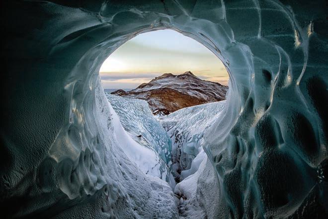 If you visit southern Iceland during winter, explore the area’s ethereal ice caves with a guide from Southcoast Adventure (it’s dangerous to explore ice caves on your own) ( s o u t h a d v e n t u r e . i s ) . Inside a glacier atop the Katla volcano are wind-carved walls of curved ice in brilliant hues of blue. You’ll walk, crawl, and sometimes slide on your belly through mysterious passageways. Turn off your flashlight and the ice will twinkle like a star-filled sky.