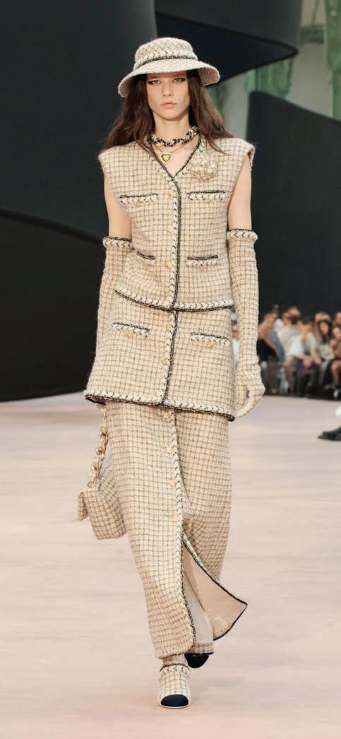 Fantasy tweed jacket ($7,400), Fantasy tweed pants ($4,550), tulle blouse ($4,350), tulle skirt ($2,480), earrings ($875), Chanel, Saks Fifth Avenue, Waterside Shops, Naples, chanel.com