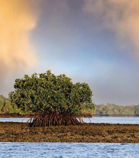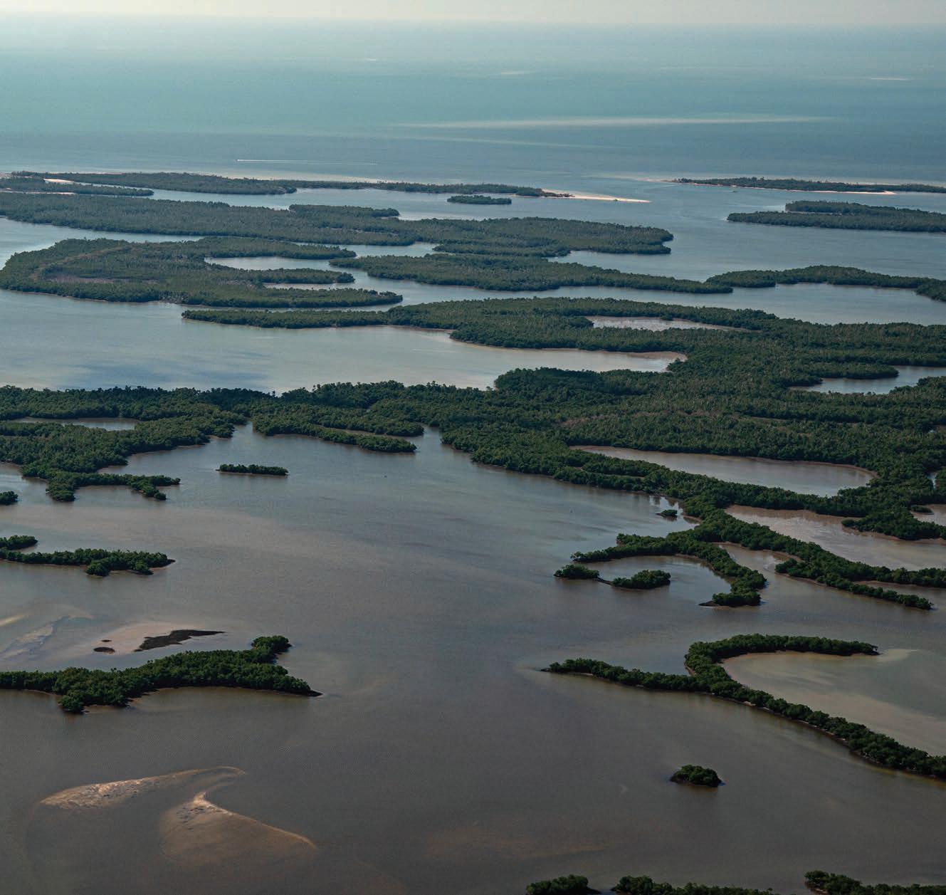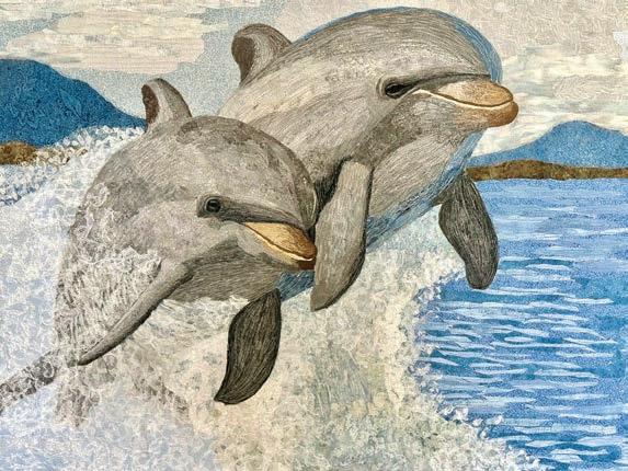 Clockwise from above: Wild and Wonderful by Peggy Keigley and Freyde and Sisters by Giampaolo Curreri, both on display at Rookery Bay Environmental Learning Center; Beach and Elegant Woman by James Robellard at Marco Island Center for the Arts; “Entangled in the Mangroves” exhibit at Artis—Naples.