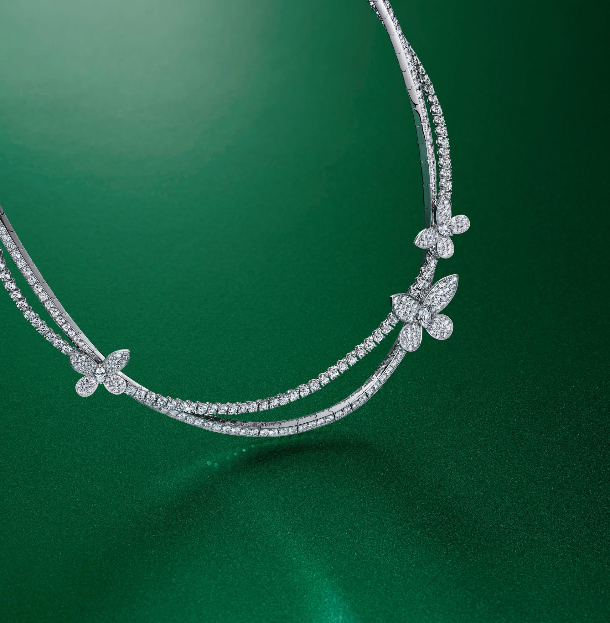 Wedge knee boots in black satin and silver beaded tartan ($10,000), shoulder bag in black satin and silver beaded tartan with pearl strap ($3,495), Jimmy Choo, jimmychoo.com; glass flower ring ($1,150), Chanel, Saks Fifth Avenue, Waterside Shops, Naples, chanel.com.