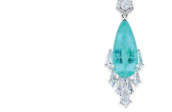 Satin dress ($2,200), Ferragamo, Worth Avenue, Palm Beach, The Gardens Mall, Palm Beach Gardens, ferragamo.com; Alice medium top-handle handbag ($3,490), Akris, Worth Avenue, Palm Beach, akris.com; Galaxy one-of-a-kind detachable drop earrings with tourmalines, pink sapphires, and diamonds set in 18-karat rose gold (price upon request), one-of-a-kind ring with peridot, pink sapphires, and diamonds set in 18-karat rose gold (price upon request), Nini Jewels, Palm Beach, instagram.com/nini_palm_beach.