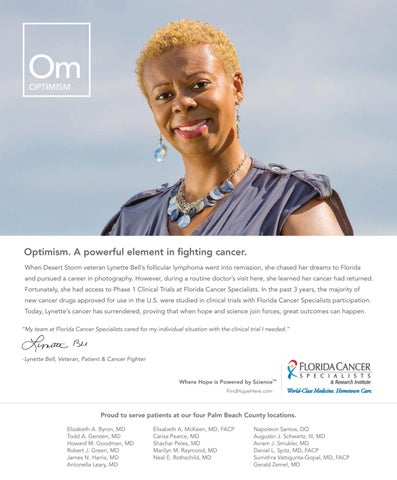 Optimism. A powerful element in fighting cancer. When Desert Storm veteran Lynette Bell’s follicular lymphoma went into remission, she chased her dreams to Florida and pursued a career in photography. However, during a routine doctor’s visit here, she learned her cancer had returned. Fortunately, she had access to Phase 1 Clinical Trials at Florida Cancer Specialists. In the past 3 years, the majority of new cancer drugs approved for use in the U.S. were studied in clinical trials with Florida Cancer Specialists participation. Today, Lynette’s cancer has surrendered, proving that when hope and science join forces, great outcomes can happen. “My team at Florida Cancer Specialists cared for my individual situation with the clinical trial I needed.”